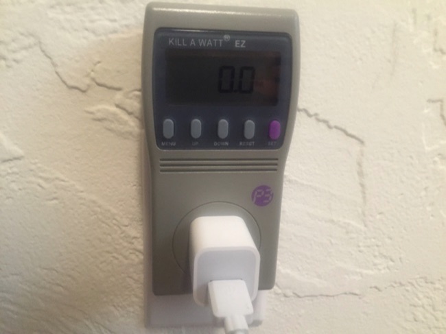 Ý tưởng lúc này là sử dụng một bộ cổng cắm kéo dài có nhiều ổ để đo tổng mức tiêu thụ của rất nhiều loại sạc. Mặc dù bộ cổng cắm dùng trong thử nghiệm có gắn đèn LED nhưng mức độ tiêu thụ khi đo bằng máy Kill A Watt vẫn là 0,0. Tiếp sau đó, dù đã gắn vào rất nhiều cổng sạc nhưng mức điện tiêu thụ đo được vẫn chỉ là 0,0.