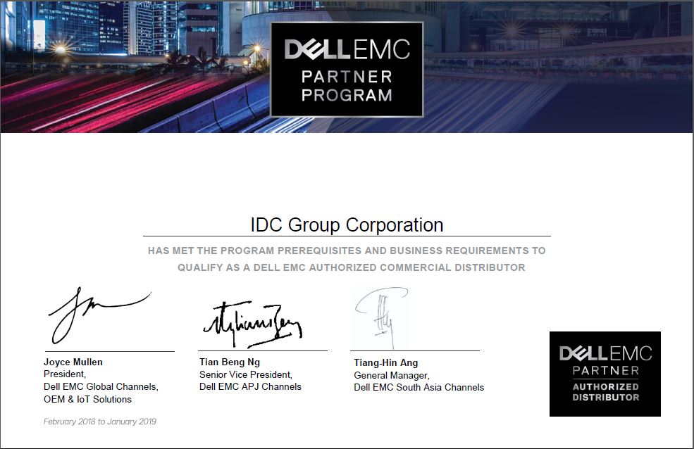 Tháng 5 vừa qua, Công ty Dell tiếp tục trao chứng nhận IDC Group là nhà phân phối chính thức các dòng sản phẩm của Dell như laptop, PC, Server....