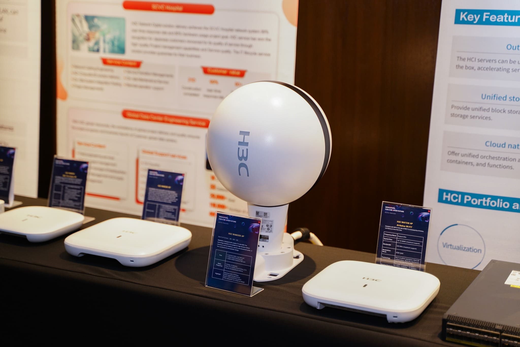 Với rất nhiểu sản phẩm công nghệ tiên tiến nhất bao gồm các sản phẩm phần cứng của H3C và các sản phẩm phần mềm tích hợp AI của CMC TS và ASC.