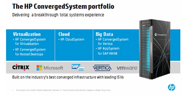 HP hiểu rõ những yếu tố cần thiết trong các trung tâm dữ liệu của tương lai, và đang loại bỏ sự phức tạp của các hệ thống CNTT thông qua các sáng kiến, sản phẩm mới trong danh mục giải pháp Hệ thống hội tụ HP ConvergedSystem mới. HP Converged System là một loạt các hệ thống CNTT tích hợp, chuyên dụng dành cho các ứng dụng quan trọng như ảo hóa, dữ liệu lớn và cơ sở hạ tầng máy desktops ảo.
