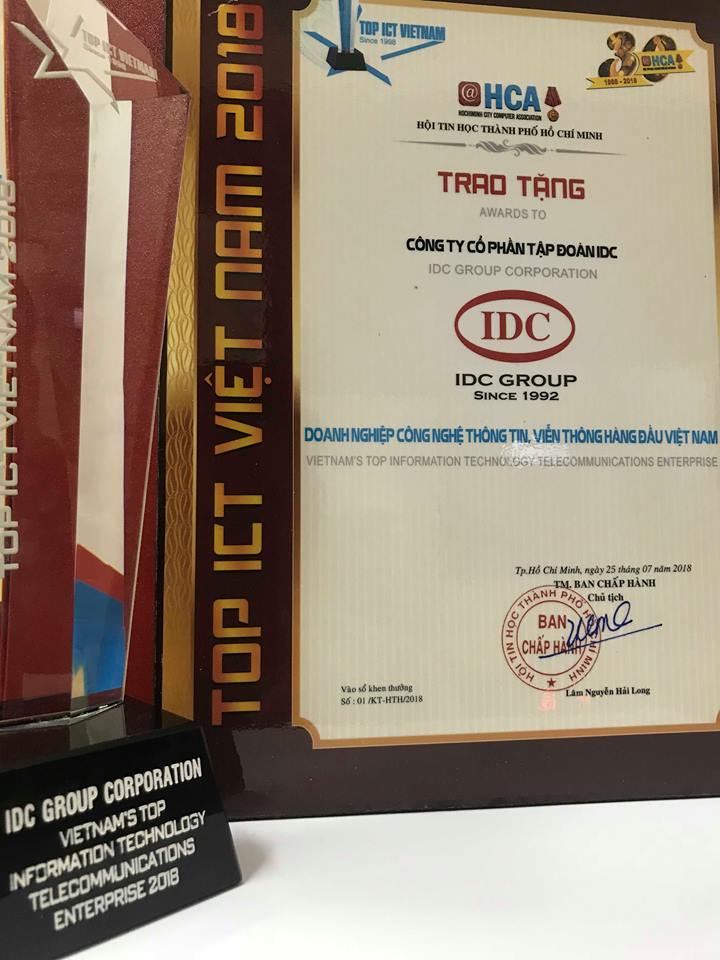 Cup và bằng chứng nhận giải thưởng của IDC Group.
