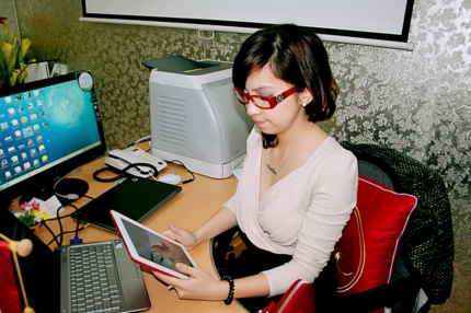 Công việc luôn chiếm hết khoảng thời gian trong ngày, do vậy việc sử dụng những thiết bị high-tech hỗ trợ cô giám đốc trẻ tuổi và tài năng này rất nhiều trong công việc.