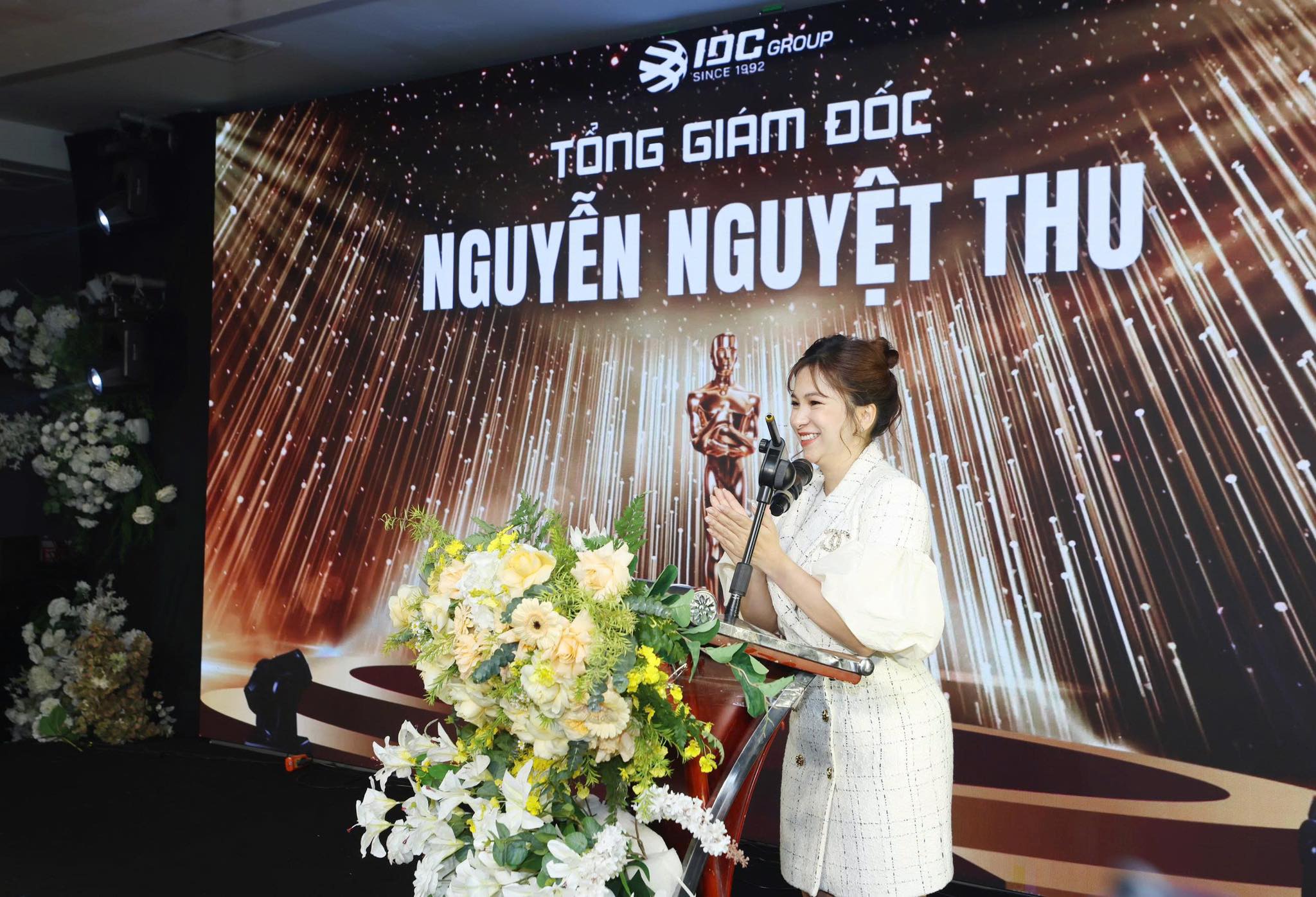Tiếp nối không khí truyền cảm hứng, Tổng Giám đốc Nguyễn Nguyệt Thu chia sẻ về tầm nhìn chiến lược và những bước tiến quan trọng của IDC Group trong năm mới. Bà nhấn mạnh vai trò của sự đổi mới, tinh thần hợp tác và trách nhiệm tập thể trong việc hiện thực hóa các mục tiêu dài hạn. Bài phát biểu không chỉ khích lệ tinh thần toàn thể đại gia đình IDC Group, mà còn củng cố niềm tin vào một giai đoạn phát triển mạnh mẽ, chuyên nghiệp và bền vững hơn phía trước.